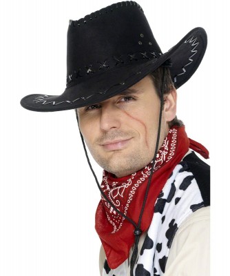 SUEDE LOOK HAT WITH LARGE STITCHING AND NECK CORD