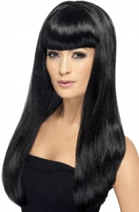 LONG, STRAIGHT BALCK WIG WITH FRINGE
