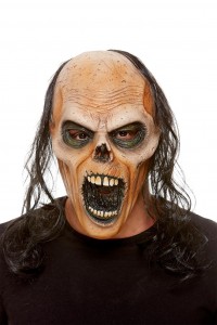 3/4 OVERHEAD LATEX MASK WITH BROWN HAIR